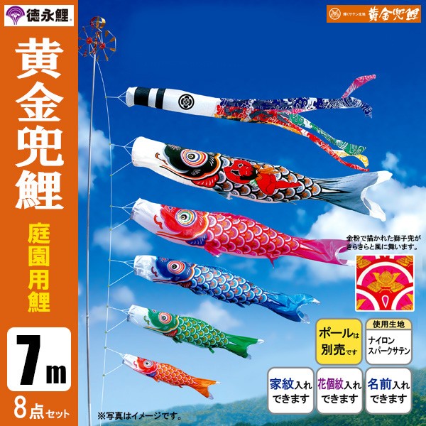 | 黄金兜鯉 庭園用大型鯉のぼり ポール別売り | 7m鯉3匹 7m鯉4匹 7m鯉5匹 | 8m鯉3匹 8m鯉4匹 8m鯉5匹 | 9m鯉3匹 9m鯉4匹 9m鯉5匹 | 10m鯉3匹 10m鯉4匹 10m鯉5匹 |