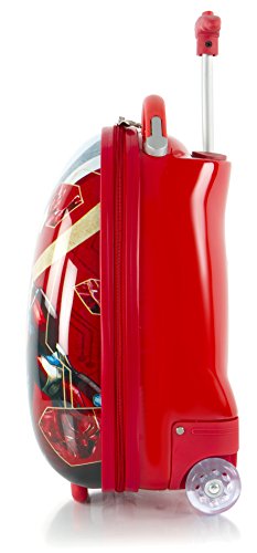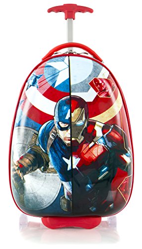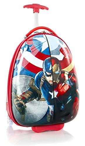 -. Binding : Electronics -. Brand : Captain america -. Color : Blue -. EAN : 0700118157473 -. Feature : Made of ABS/polycarbonate composite. 18" Captain America Kids Rolling Carry On Suitcase makes travel fun for little ones with its charming artwork of Captain America / Lightweight and extremely easy to maneuver by kids. Specially designed Protruding Inline wheels with Metal Bearings / Retractable internal reserved curved pull handle system designed especially for children / Zip closure non expandable construction. Interior is fully lined and features a zippered divider for internal organization / Measures 18" L x 12" W x 9" D. Weight 3.75 lbs. -. Label : Heys America -. Manufacturer : Heys America -. ProductGroup : PC Accessory -. ProductTypeName : CARRYING_CASE_OR_BAG -. Publisher : Heys America -. Studio : Heys America -. Title : Marvel Captain America Boy's 18" Rolling Carry On Lage -. UPC : 700118157473