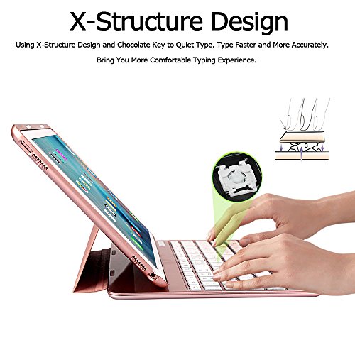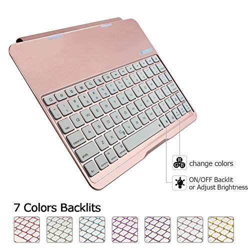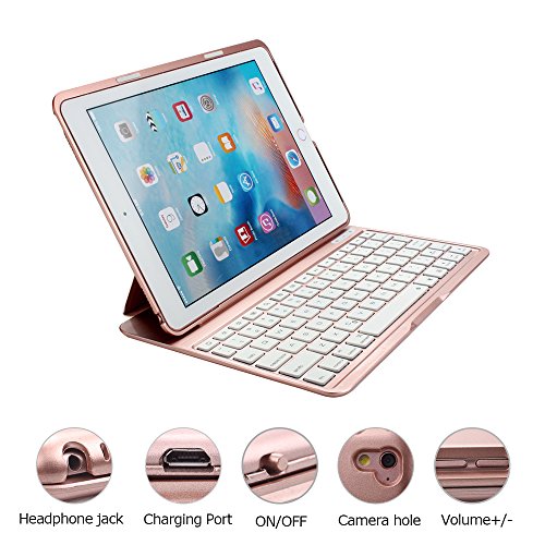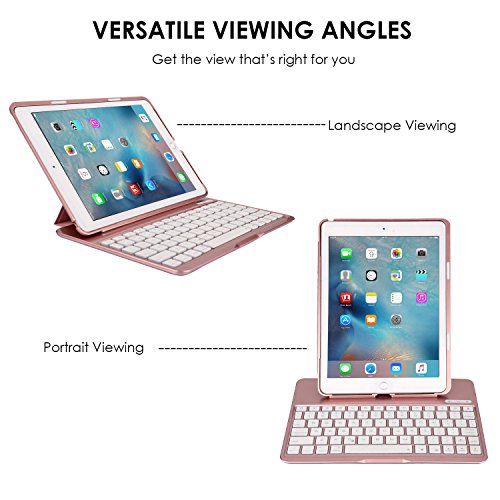 Earto iPad Pro 9.7 Keyboard Case 7 Color Backlit Detachable Keyboard Cover Slim Folio Smart Case with Keyboard for iPad Pro 9.7(Rose Gold)