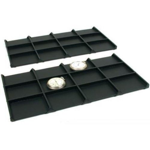 -. Feature : This is a new set of two 12 compartment black faux leather tray inserts / With these inserts you are able to keep components, findings or small jewelry pieces organized and visible / Each compartment measures approximately 3 1/4" x 2 3/8" (82 x 60 mm) / Each insert measures approximately 14 1/8" x 7 5/8" x 1/2" (35.8 cm x 19.2 cm x 12 mm)