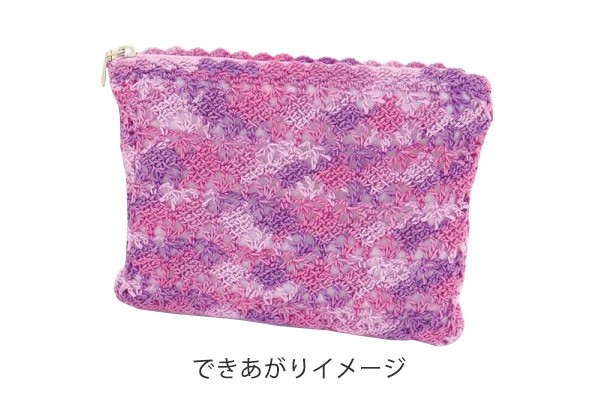 | 簡単に編み付けることができる両サイドに穴の開いたファスナーを使用したキットです。使いやすいおしゃれなポーチが作れます。中級者の方向けです。 |