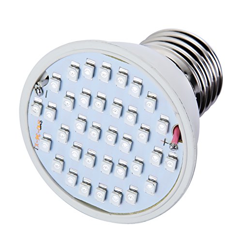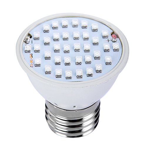 -. Feature : Grow Light LED chips:20Red&16Blue .Really helps when the plant need extra boost of light. Refined light wavelength will maximize your plant growth in an eco-friendly and energy efficient way. / The led grow light bulb with the characteristics of energy-saving, low power consumption, high luminous efficiency and long lifespan. / Excellent Heat Dissipation: With high quality led sourse and premium material, excellent outside heat-sink construction,keep the temperatures down perfectly,not too hot even for a long time use,prevents any damage to your garden plants. / Power:7W led plant grow light bulb. Size:50mm X 50mm X 55mm. / Easy Installation: E27 base,just plug and play to the socket, don't need any other accessories to install.