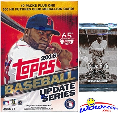 2016 Topps UPDATE MLB Baseball EXCLUSIVE Factory Sealed Retail Box with 10 Packs & 101 Cards PLUS Bonus BABE RUTH Collection Foil Pack! Box includes VERY SPECIAL MLB 500 HR Futures Club Medallion!
