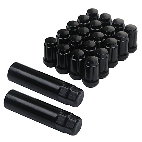 HLZZ SL-N002 Set of 20 Pieces Premium Black Spline Lug Nuts M12x1.5|1.38" Tall with Key For Aftermarket Wheels Fits Honda Acura JDM + More