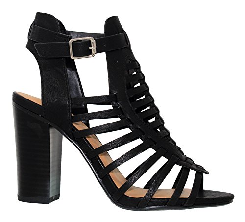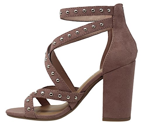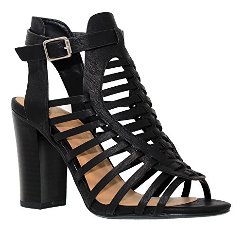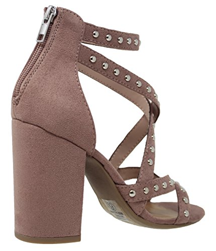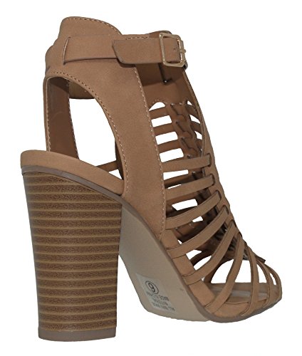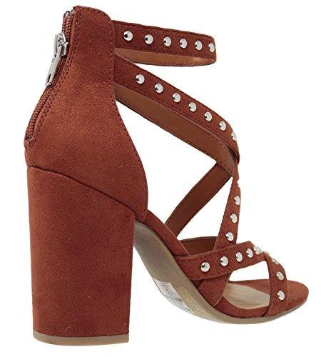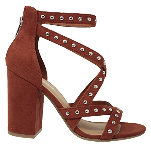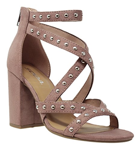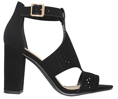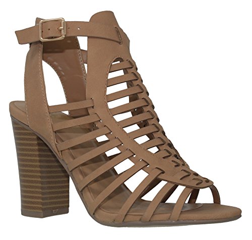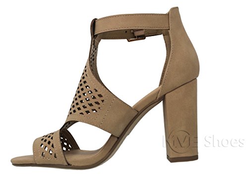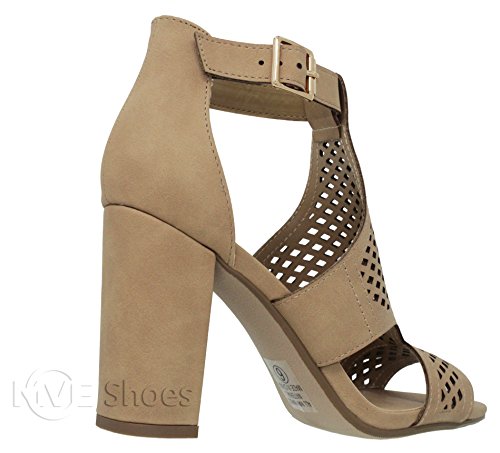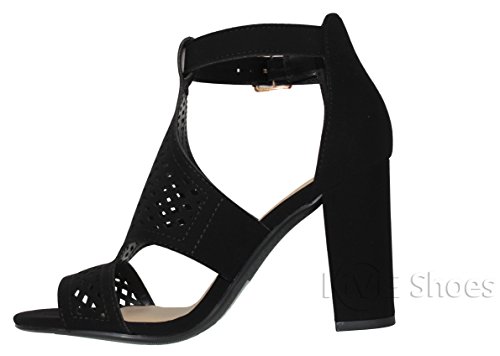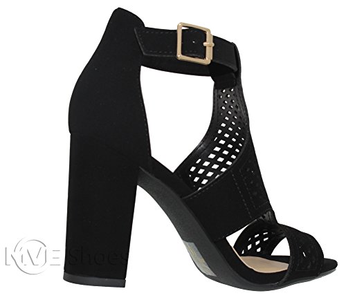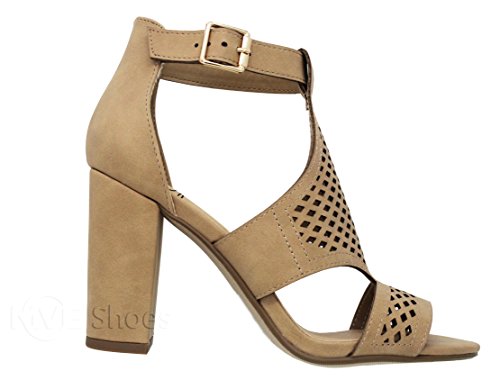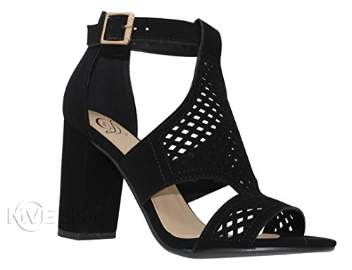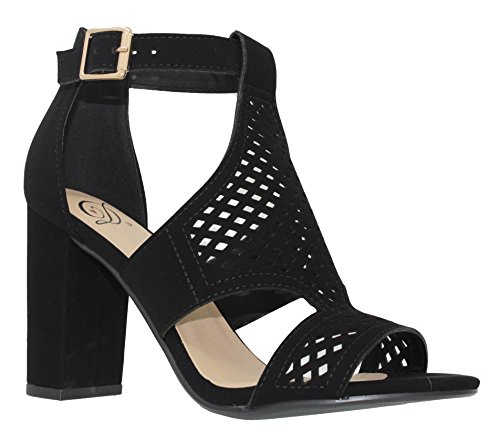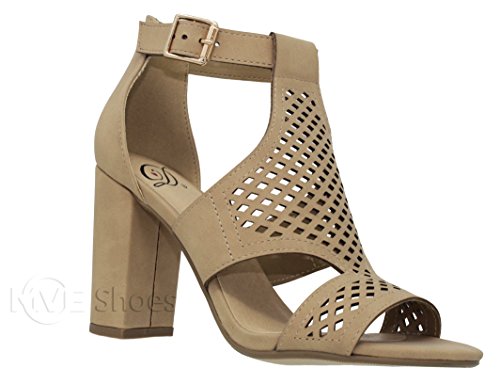 | MVE Shoes Stack Block Heel Perforated Pattern Shootie, Western Bootie Sandal |
