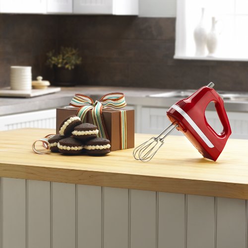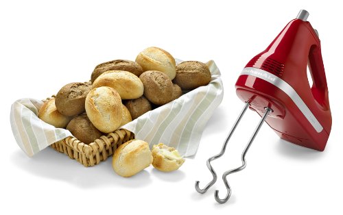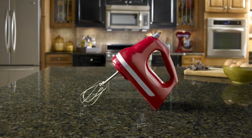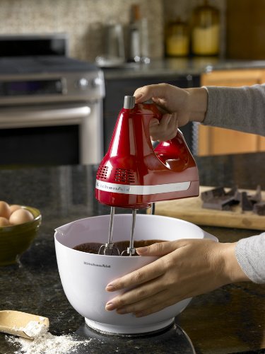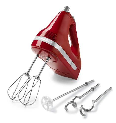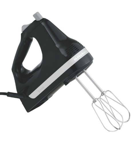 Equipped with a powerful yet quiet motor, this lightweight five-speed hand mixer features turbo-powered beaters and an electronic mixing sensor to efficiently whip cream, mix cake batters, beat eggs, and more. The unit's well-balanced ergonomic design eases mixing fatigue, and its handle is angled to minimize wrist strain. Other highlights include an oversized beater-ejector button, a rounded power cord, protected air vents, and a stable heel rest. To clean, wash the beaters in hot, soapy water and wipe the body with a clean, damp cloth. The mixer measures 7-1/2 inches long by 6-1/2 inches high and carries a one-year full warranty.Feature