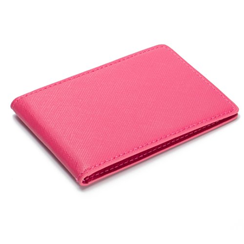 Title : Ultra Slim Mini Size Wallet ID Window Card Case with RFID Blocking - Cross-grain Hot Pink