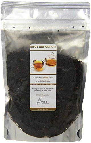 -. Binding : Grocery -. Brand : Hale Tea -. EAN : 0603932410604 -. Feature : 4-Ounces of Loose Tea / An excellent morning tea; Enjoy with milk and sugar / Medium caffeine level; Serve hot. / Resealable clear stand-up pouch / Hale Tea Company based in Savannah, Georgia; Traces its roots back to a humble tea shop in London, England in 1872 -. Label : Hale Tea Company -. Manufacturer : Hale Tea Company -. NumberOfItems : 1 -. PackageQuantity : 1 -. ProductGroup : Grocery -. ProductTypeName : GROCERY -. PublicationDate : 2012-06-12 -. Publisher : Hale Tea Company -. Size : 4 Ounces -. Studio : Hale Tea Company -. Title : Hale Tea Black Tea, Irish Breakfast, 4-Ounce -. UPC : 603932410604