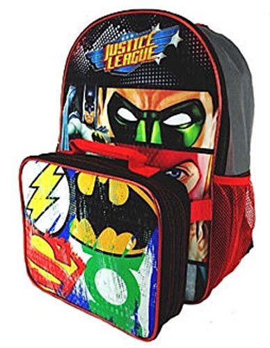 -. Brand : Fast Forward -. Color : Black -. Department : boys -. EAN : 0840716178736 -. Feature : Justice League backpack with insulated lunch bag / Mesh side pockets to carry essentials - Top carrying handle / Adjustable shoulder straps - Zipper main compartment / Easy Wipe clean / Dimensions: 12" W x 17" H x 5" D -. MPN : 43225-1507 -. PartNumber : 43225-1507 -. ProductGroup : Apparel -. ProductTypeName : LAGE -. Size : One_Size -. Title : DC Comics Justice League Kids Backpack with Lunch Bag -. UPC : 840716178736