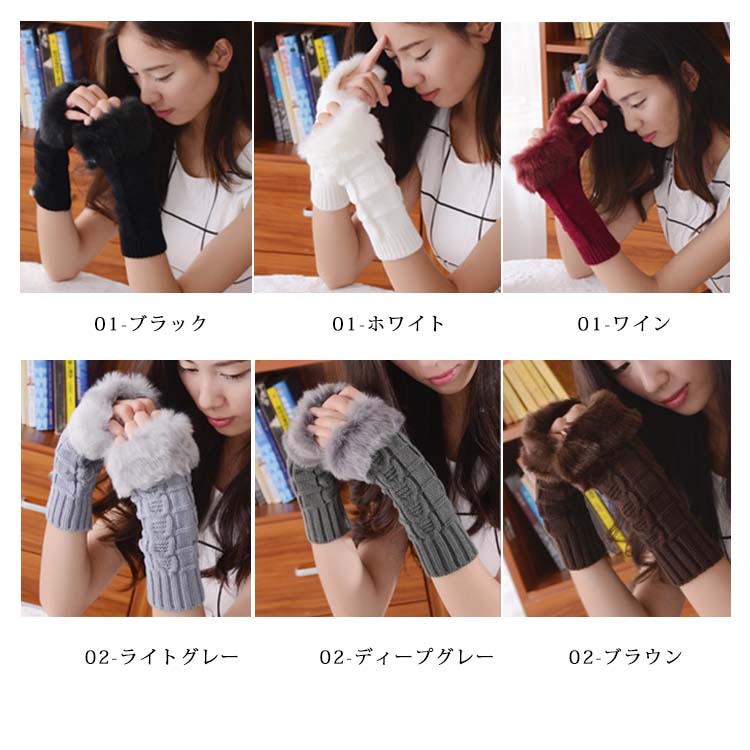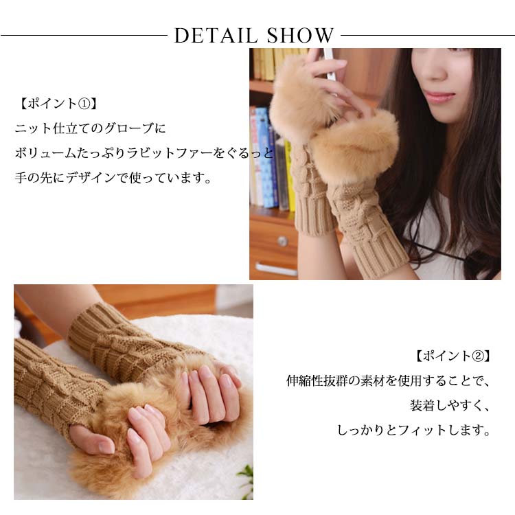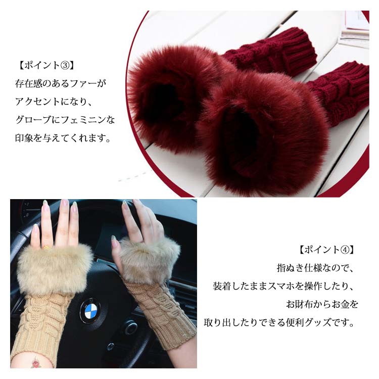 | ファーをトリミングしたニットグローブ ♪装着したままスマートフォンも操作できる!ボリュームのあるファーが可愛らしい印象を与えます。携帯電話・スマートフォンなどもラクラク使えるうれしいアイテムです。 | |