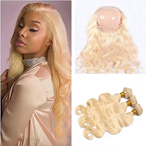 Studio : Ruma Hair Publisher : Ruma Hair Binding : Misc. Product Description Cheap Pure Color #613 Blonde Body Wave Wavy Virgin Human Hair 3 Bundles With 360 Lace Frontal Closure 4Pcs Lot