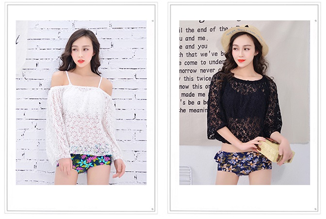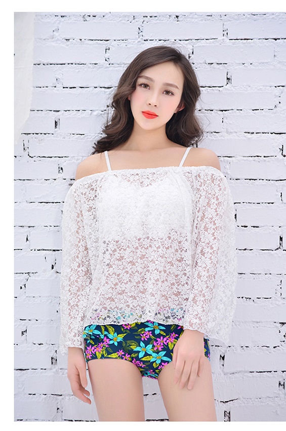 レースのオフショルトップスを着れば、体型カバーにも◎夏のビーチや海外リゾート、砂浜でのイベントやプールなどにいかがでしょうか。