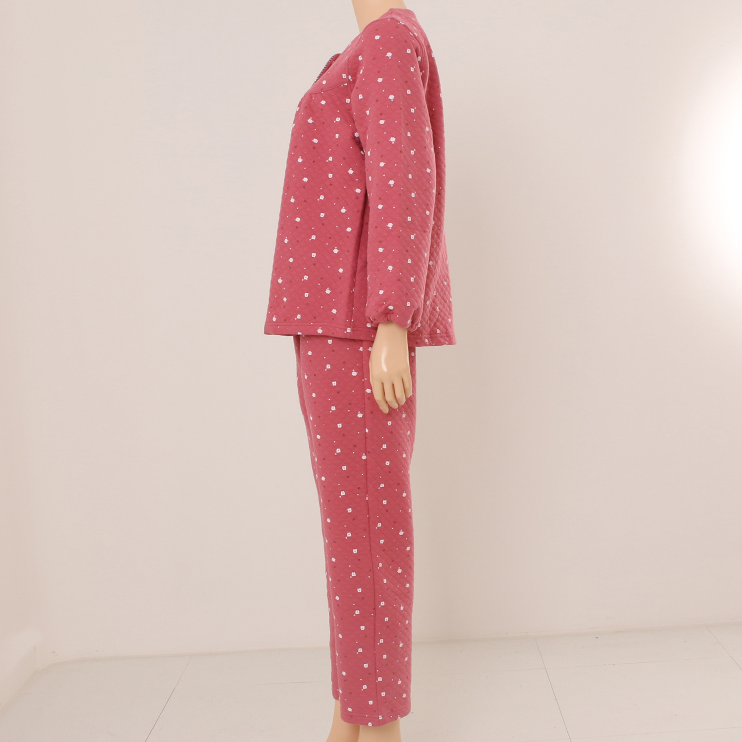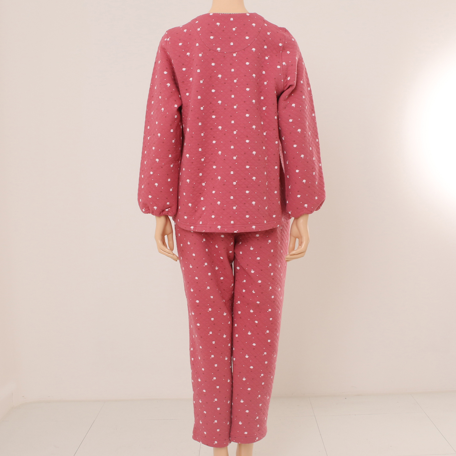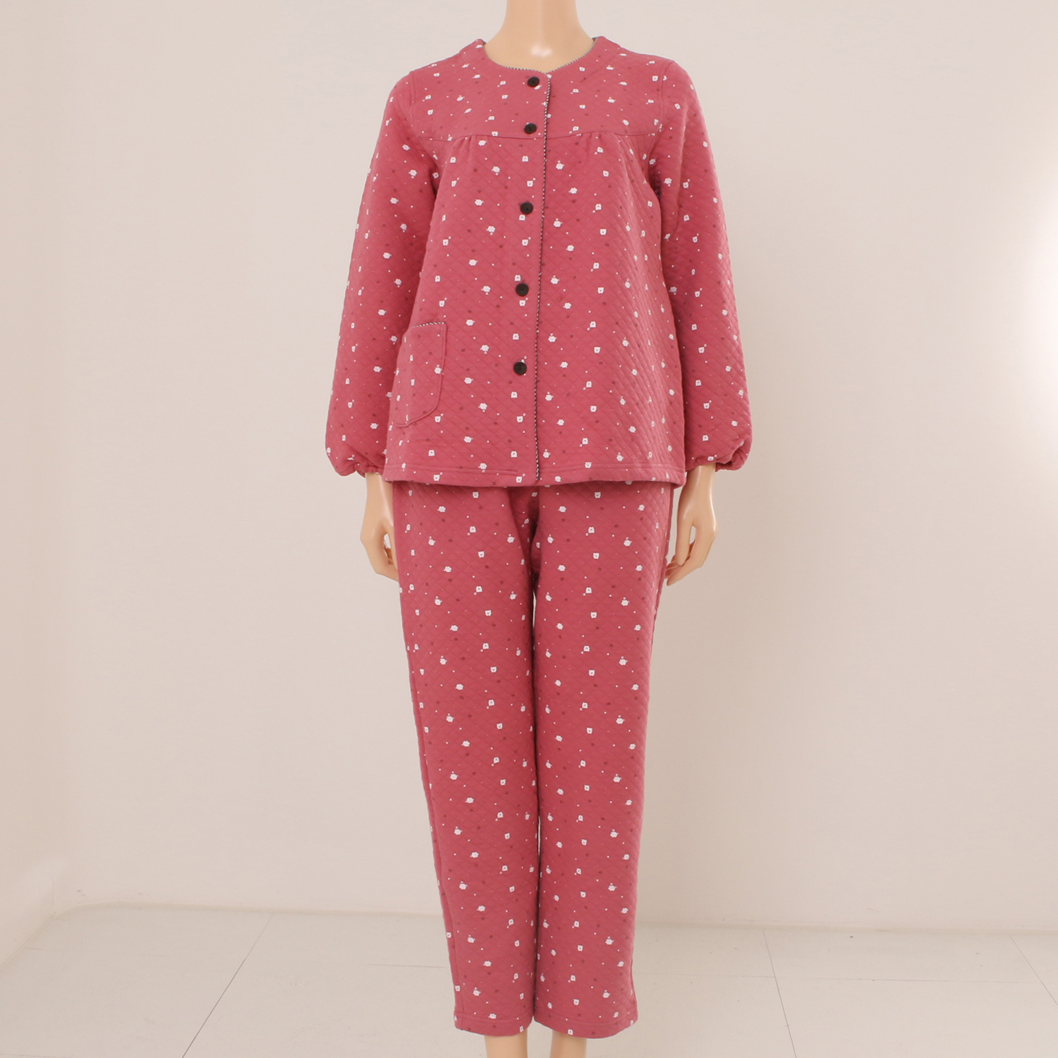 작은 돼지나염이 프린트된 귀엽고 따뜻한 삼중직 파자마로 작은체크를 매칭하여