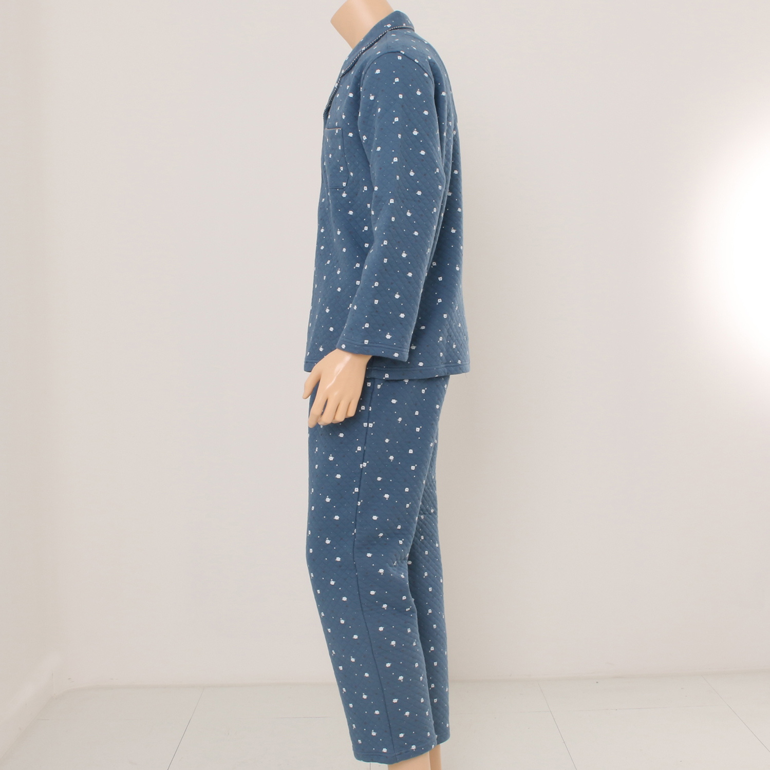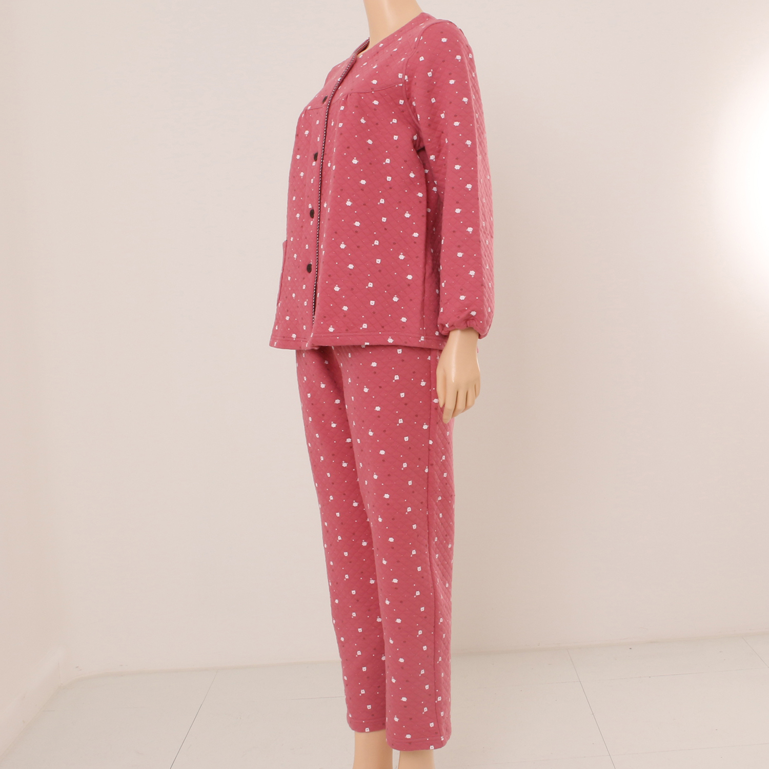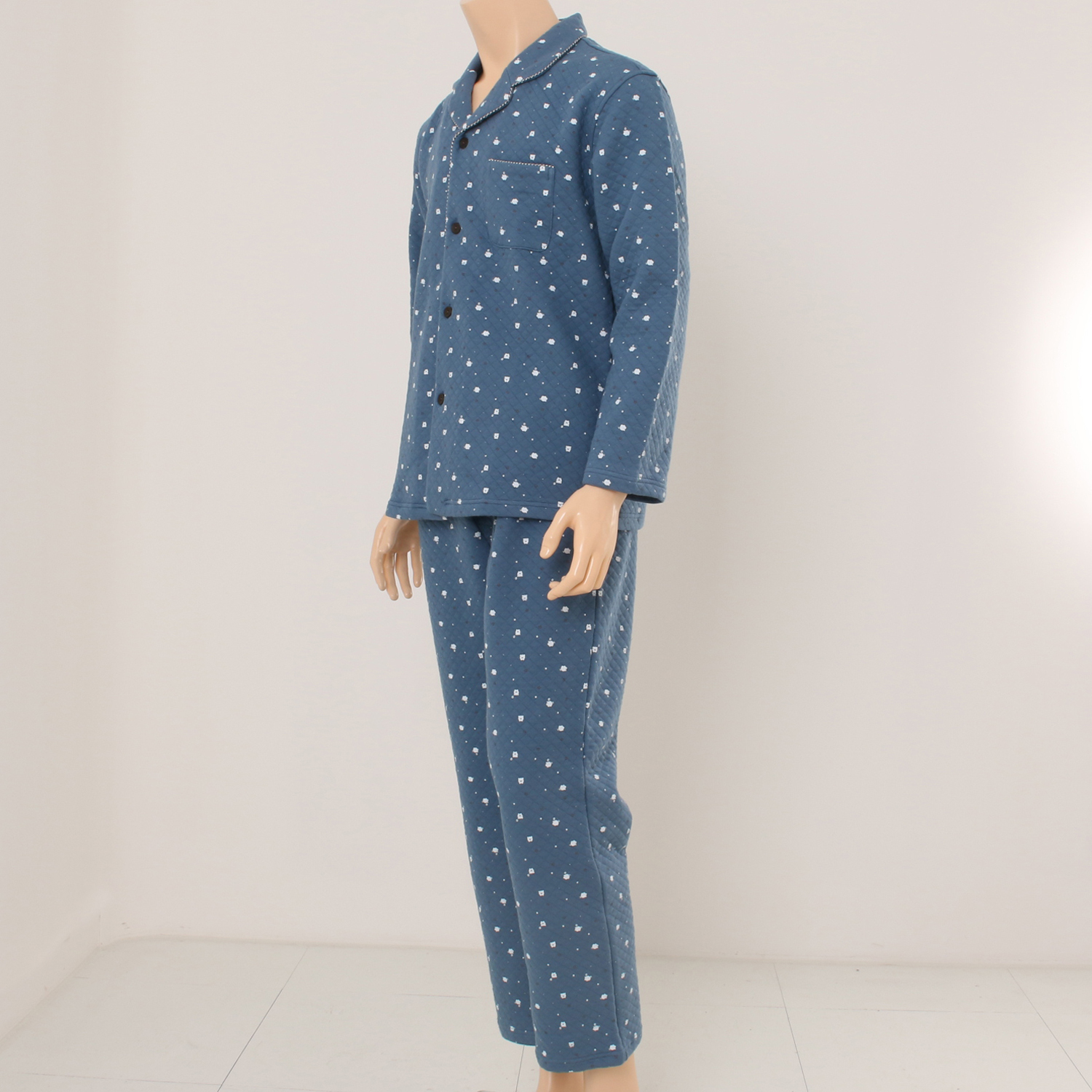 작은 돼지나염이 프린트된 귀엽고 따뜻한 삼중직 파자마로 작은체크를 매칭하여