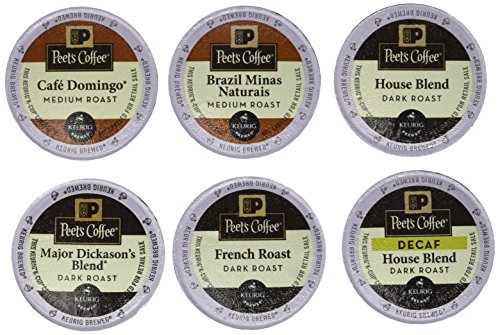 30 K-cup Peets Coffee Sampler Variety PackWITH DECAF (Brazil Minas Naturais, Cafe Domingo, House Blend, Major Dickasons, French Roast & House Decaf)