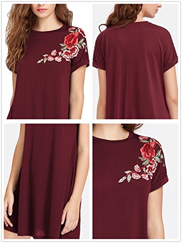 Short sleeve, round neck, Embroider flower, loose bottom.