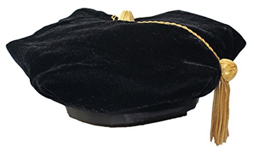 GraduationMall Unisex 8 Sided Black Doctoral Tam with Gold Bullion Tassel,Adjustable Sizes XS-XL