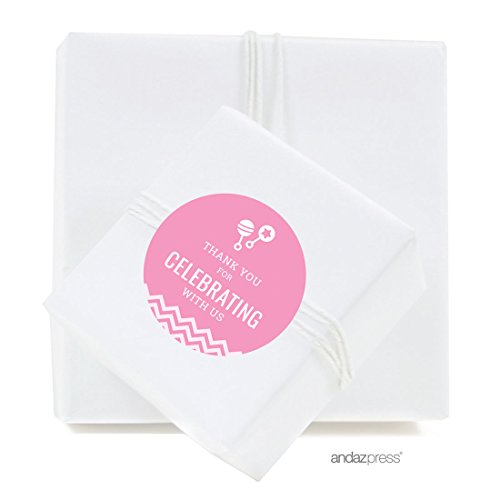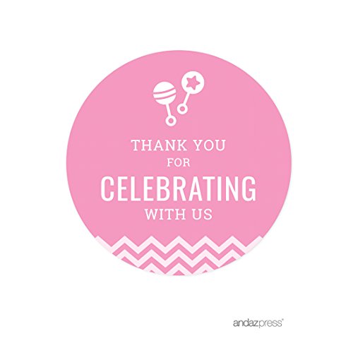 Andaz Press Pink Chevron Girl Baby Shower Collection, Round Circle Label Stickers, Thank you for Celebrating with Us!, 40-Pack