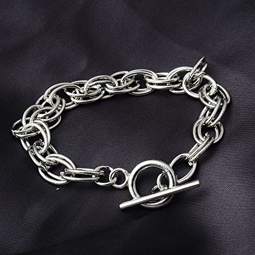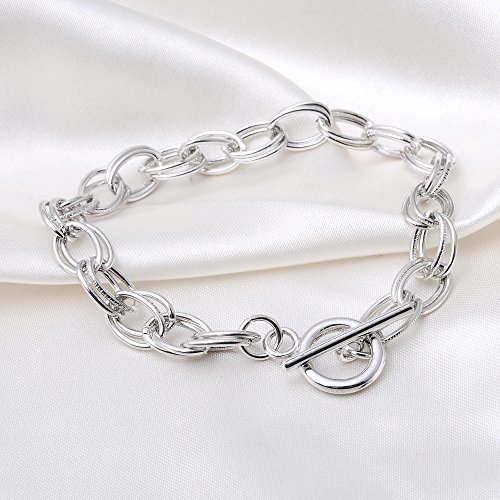 RUBYCA 10Pcs Toggle Clasp Silver Color Charm Rolo Bracelet Double Oval Link Chain 18cm DIY Jewelry