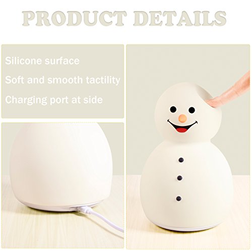 [NEW] Snowman Music LED Baby Night Light, GoLine Multicolor Nursery Lamp, Soft Holiday Gift Idea Room Decor for Kids Women, Tap Control, Mute & Sound...