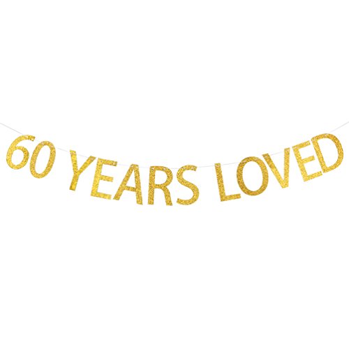 INNORU® 60 Years Loved Banner Gold Glitter Sign - 60th Birthday Party Decorations