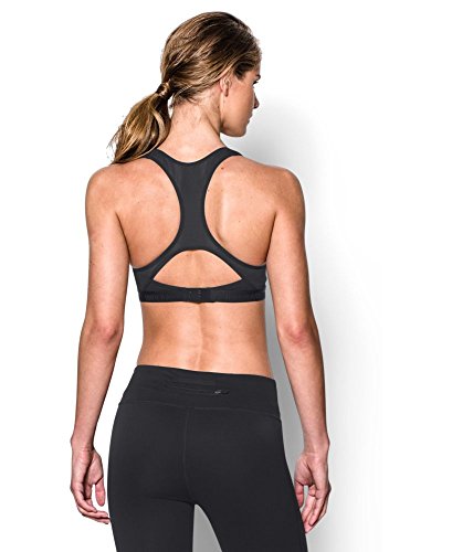 UA Compression sports bras deliver superior support & comfort during intense workouts. Super-smooth, double-layer HeatGear fabric delivers superior next-to-skin feel Signature Moisture Transport. System wicks sweat to keep you dry & light. Soft, molded cups for enhanced shape. Full textured mesh back panel. Performance gel-lined straps for optimal comfort. Plush, Branded elastic band with adjustable hook & eye back closure. Deep V plunge neckline.Feature