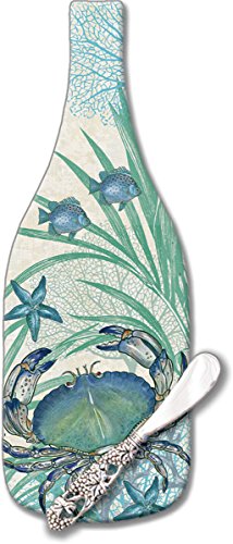CounterArt 'Oceana' Wine Bottle Shaped 12-1/2" Glass Cheese Board with Spreader Knife