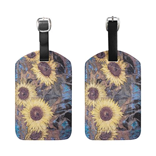 (YZGO)/Accessories/Luggage, Bags Travel/DIRECT FROM USA/YZGO Retro Grunge Sunflowers PU Leather Luggage Tags Bag Label Tag Travel Accessories for Suitcase