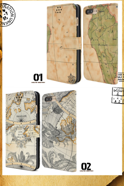 レトロな世界地図デザインがオシャレな、iPhone7 Plus用ケースポーチ!