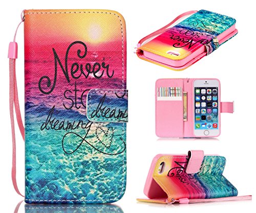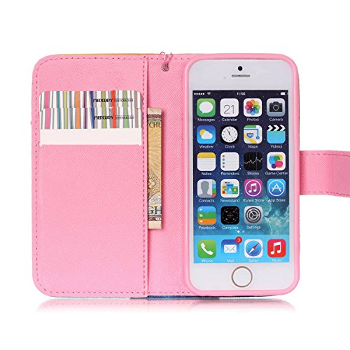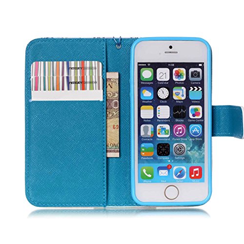 [Description] Compatibility: only for Apple iPhone 5/SE/5S - Verizon_ AT&T_ T-Mobile_ Sprint. Not for other devices_ compact_ elegant_ stylish pattern design. Ultra Slim folio type case to minimize bulk and weight. Stand Feature: Perfect for video chatting and watching movie.Can be converted easily into a stand case for video watching and messaging. Perfect: Easy snap on/off installation.Precise cut and design;Easy access to all ports_ sensors_ speakers_ cameras and all Phone features. Protects Feature: Made of premium synthetic leather;soft interior material provides a good protection of your phone.Protects your Apple iPhone 5/SE/5S against scratches_ dirt_ and daily wear and tear. Wallet Style: Included 2 Card Slots carry around your ID_ credit or debit cards_ and cash without having to take your wallet with you. Built-in magnetic for secure closure.Stylish PU Leather Wallet Case for Apple iPhone 5/SE/5S.Detachable Wrist strap for carrying convenience.