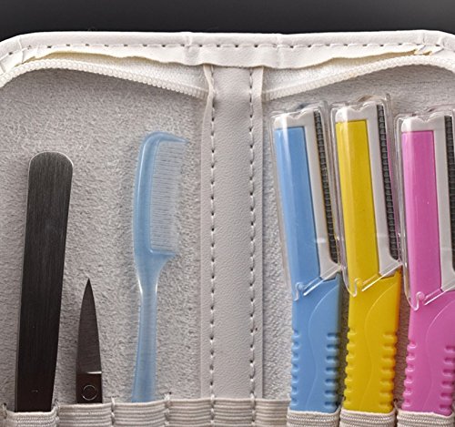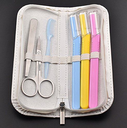 - Complete Perfect Set – 3Pcs Spare Eyebrow Razors,Comb,Tweezer, Scissor. Can also be used for Daily Shaping Eyebrow purposes. • Tweezers comfortably remove unwanted facial, eyebrow and body hair without any pain. EACH SET packed with bonus high quality White Zipper Case and easy for storage, travel and perfect for gift giving.