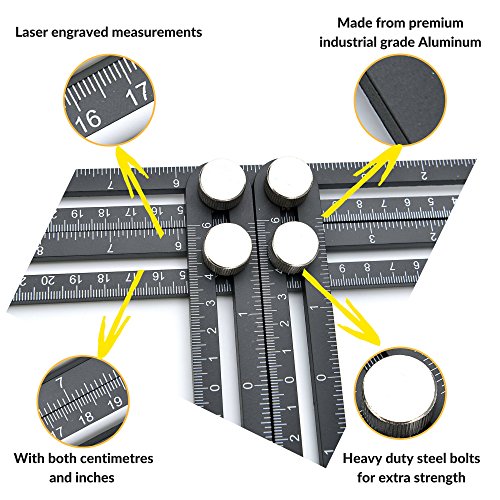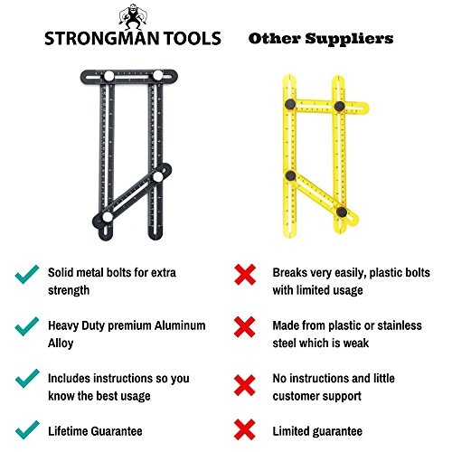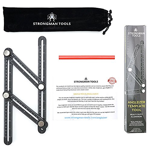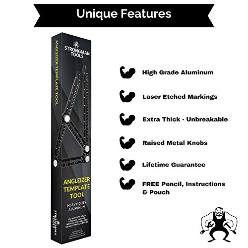 Strongman Tools | Heavy Duty Aluminum Angleizer Template Tool | Multi Angle Measuring Ruler | FREE Protective Pouch and FREE Builders Pencil