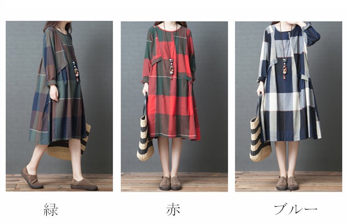 【商品特徴】・ゆったり、ラフなシルエット。カジュアル&リラックス感満点。・あると便利な着回しチュニック。合わせるスタイルを選ばないからたくさん着回せる。・ワイドデザインでストレスフリーな着心地。サイズに切替が入っているからシルエットがすっきりと見える。着膨れ感が少ないのが嬉しいポイントです。・着こなしに女性らしさを与えてくれる深みのあるレッド。カジュアルにも上品にも着こなせます。【キーワード】検索綿麻混ワンピース ワンピース ロング レディース ロングワンピース ロング丈 ワンピース コットンリネン 体型カバー 長袖 ワンピース チュニック ロングワンピ 体型カバー 森ガール ナチュラル服 秋 冬 秋ワンピース ゆったり 大きいサイズ 着痩せ 30代 40代 50代 60代 お洒落 おしゃれ オシャレ ゆるっと 旅行 ママワンピース 母親 ママ ワンピース チェック柄 M L 2L 3L 緑 赤 ブルー【ご注意】:初めのうち色落ちする事がありますので他のものとは別にお洗いください。・塩素系漂白剤は使用しないでください。