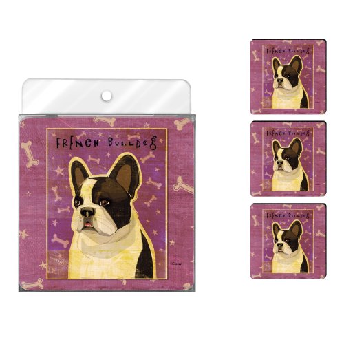 Tree-Free Greetings NC38022 John W. Golden 4-Pack Artful Coaster Set, White Brindle French Bulldog