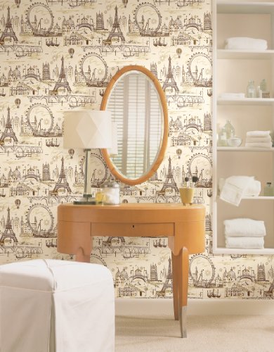 - Title : York Wallcoverings Tres Chic BL0436 Euro Scenic Wallpaper, White/Black/Red