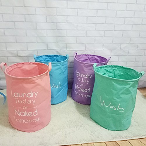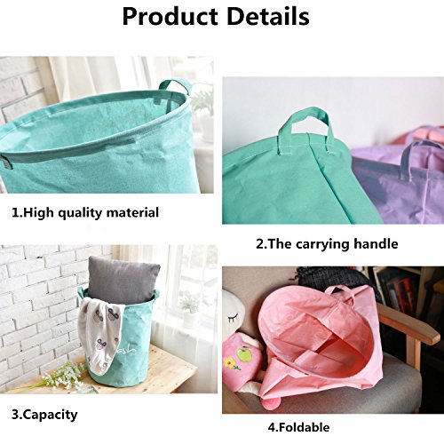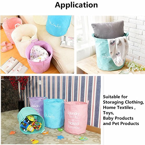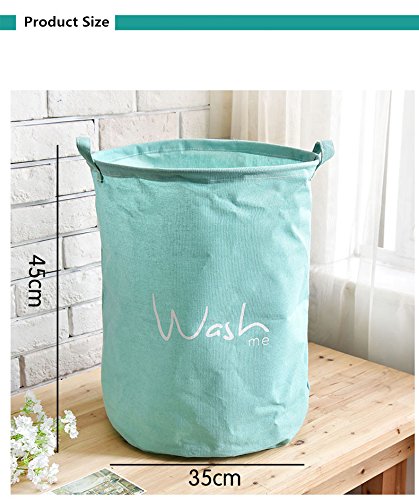 USONG Foldable Cylindrical Solid Color Canvas Fabric Storage Bin Laundry Basket Organizer (Green)