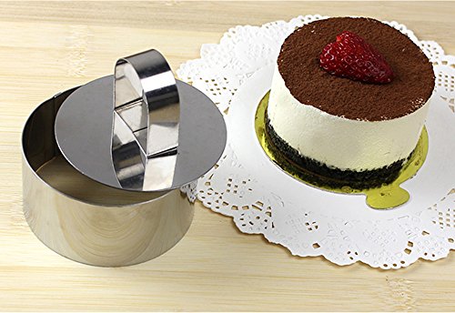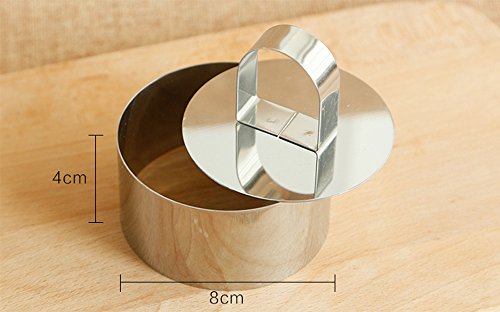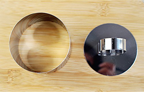 LUCKSTAR Stainless Steel Cutters - Tiramisu Cheesecake Mould Cookie Cutter Mold Fondant Cutters Rice Sushi Baking Tools for Baking Cookies with Pressing Plate (Round)
