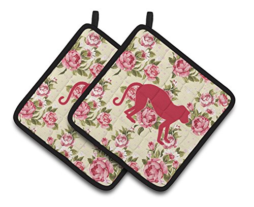 Caroline's Treasures Monkey Shabby Chic Yellow Roses Pair of Pot Holders BB1128-RS-YW-PTHD, 7.5HX7.5W, Multicolor