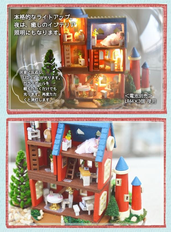 | LEDライト付☆ガラスボールのミニチュアハウスキット♪ |