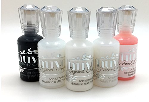 Nuvo Crystal Drops Favorites Set - White Blizzard Glitter Drops, Rosewater Jewel Drops, Crystal Drops Black, White and Clear