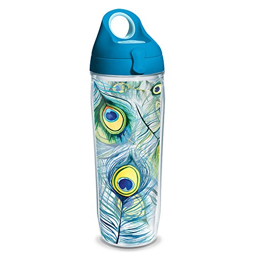 Tervis Peacock Wrap Water Bottle with Turquoise Wb Lid, 24oz, Clear