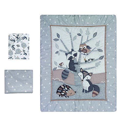 ReleaseDate : 2017-11-21 Studio : Lambs Ivy Bedtime Publisher : Lambs Ivy Bedtime Binding : Baby Product Product Description The 3-piece bedding set includes one quilt, one fitted crib sheet, and one dust ruffle. An appliqued furry little fox enjoys the great outdoors underneath a gray tree with his favorite woodland friends. The fitted crib sheet features friendly foxes, cute raccoons, wise owls and trees. The dust ruffle is a trendy triangle print which is also the back of the quilt. Fabrications are a cotton poly blend exclusive of ornamentation. Imported. 0