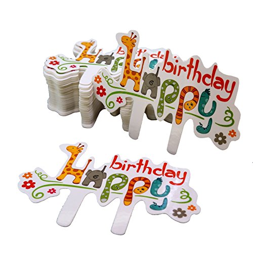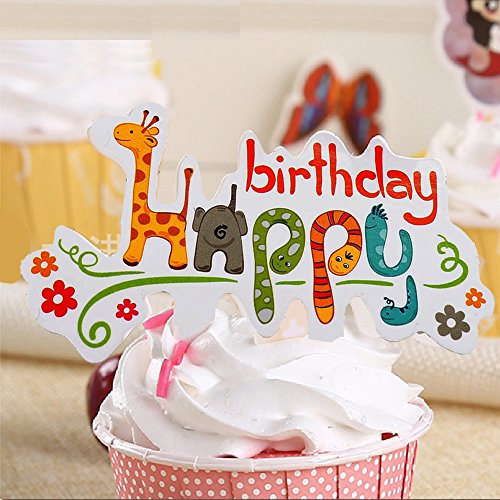 Cartoon Animal Happy Birthday Party Cupcake Toppers for Cake Decorations, Pack of 50