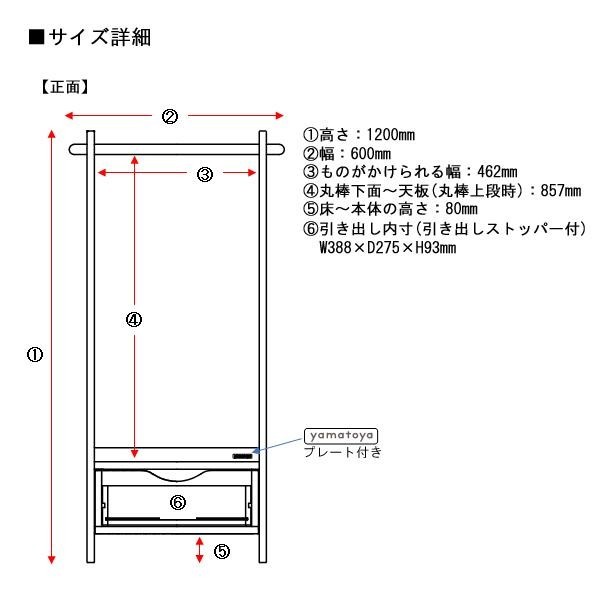 | 仕様 | 組立式 耐荷重:(ハンガーパイプ)10kg、(天板)20kg |