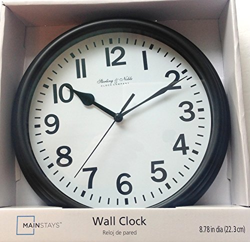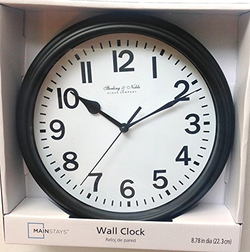 -. Binding : Kitchen -. Brand : Mainstays -. Color : Black -. EAN : 4894383470132 -. Feature : Sterling & Noble 8.78 inch Wall Clock is ideal for any room, office or dorm. / Powered by a single 'AA' battery (NOT Included) / Easy to install anywhere you need to keep track of the time / Black rim and classic styling are perfect for any home or office decor style. -. Label : Walmart -. Manufacturer : Walmart -. Model : 660376 -. MPN : MS23-061-003-50 -. PackageQuantity : 1 -. PartNumber : MS23-061-003-50 -. ProductGroup : Home -. ProductTypeName : HOME -. Publisher : Walmart -. Size : 8.78" diameter -. Studio : Walmart -. Title : Sterling & Noble Wall Clock - Black