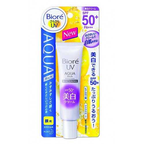 -. Feature : Biore UV Aqua Rich Watery Cream Whitening SPF 50+/PA+++ / For the face. The latest from Japan! Fully formulated sunscreen and whitening cream in one. / Science and protect skin from the sun (UV Ultra Block) SPF50 + / PA + + / Size : 33 g. Quantity : 1 tube.
