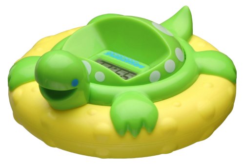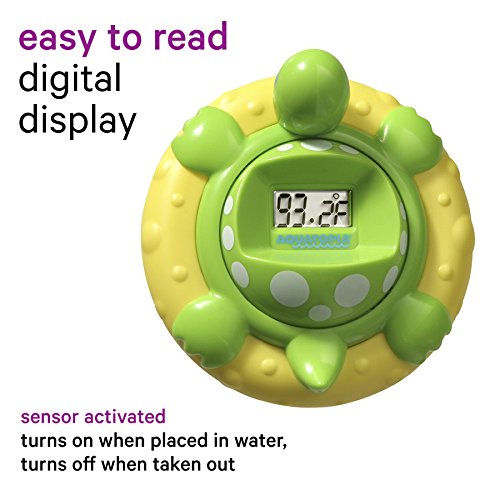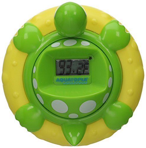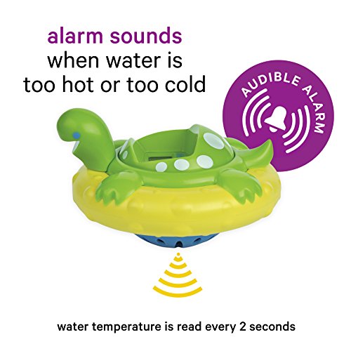 Studio : Minds In Sync Publisher : Minds In Sync Binding : Baby Product Product Description Aquatopia deluxe safety bath thermometer alarm is the easy to use safety bath time audible thermometer and eliminates hazardous guesswork by constantly and accurately measuring the bath temperature every 2 seconds. The thermometer alerts you with an audible alarm if the water is too hot, above 100.4 degree F, and another alarm if the water is too cold, below 89.6 degree F. This battery powered and water activated thermometer automatically activates when placed in water and de activates when taken out. It is fully tested to meet all necessary safety standards and it also makes a great toy. It is easy to use with no buttons. 0