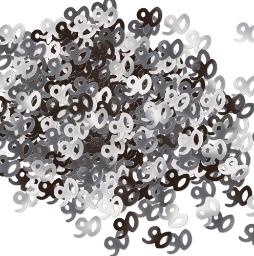 Product DescriptionEach of these fantastic 0.5oz bags of confetti contains a sparkling assortment of black and silver '90' shaped foil confetti.0