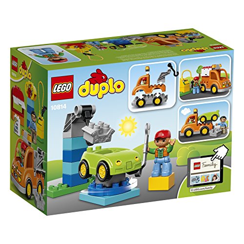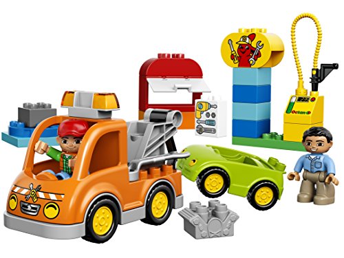 -. Feature : Features a buildable car and Tow Truck with hook plus garage elements including a turntable / Toddlers will love creating role-play stories with a vehicle break-down theme, develop early building skills by stacking the bricks to create the garage sign / Accessories include a petrol pump, wrench, special toolbox brick and a brick decorated as a garage sign as story starters / Tow Truck measures over 3" (10cm) high, 6" (17cm) long and 2" (7cm) wide, car measures over 1" (4cm) high, 3" (9cm) long and 2" (6cm) wide / DUPLO products are specially designed to be fun and easy for little hands