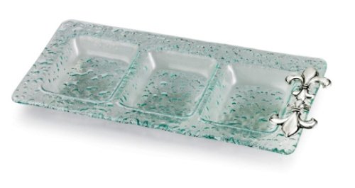 Product DescriptionGlass sectioned server comes with dimensional fleur de lis detail on corner rim.0